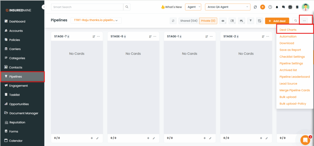 - From the dropdown, select Deal Charts