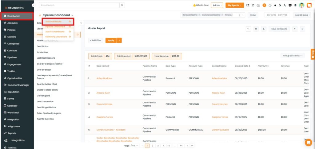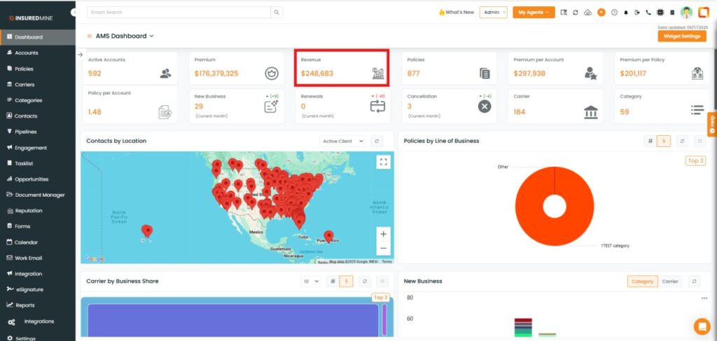 As shown below, a Revenue section is added to the AMS Dashboard Page.