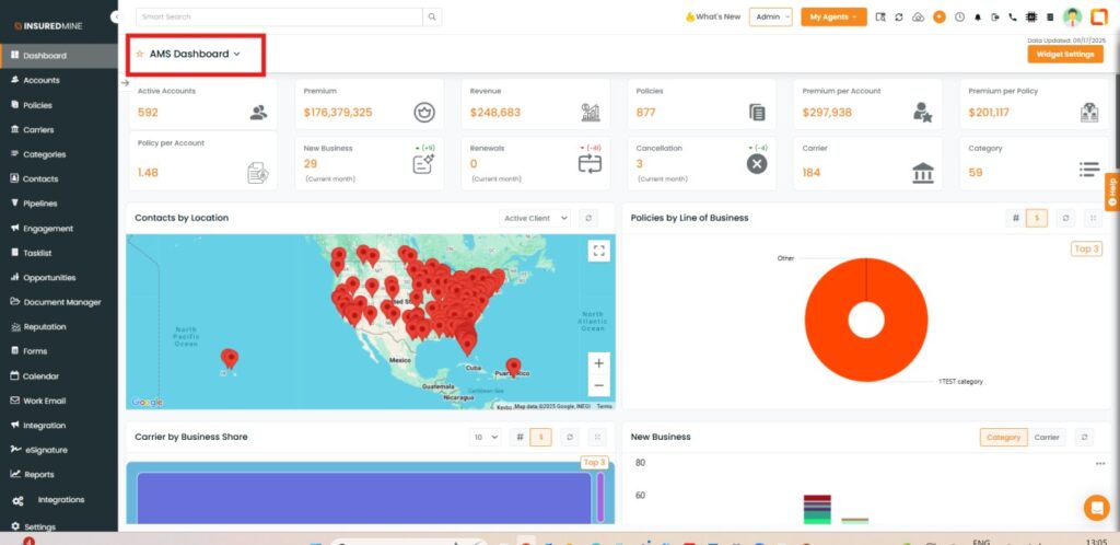 - From the dropdown, select the AMS Dashboard.