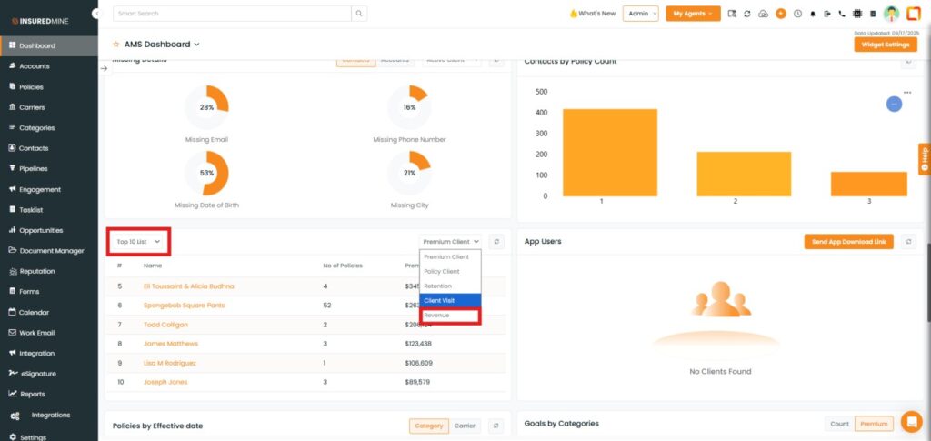 We have introduced a new enhancement under the Dashboard module. Now any commission added in Epic will be visible in the AMS Dashboard under the Revenue KPI field and Top List sections.