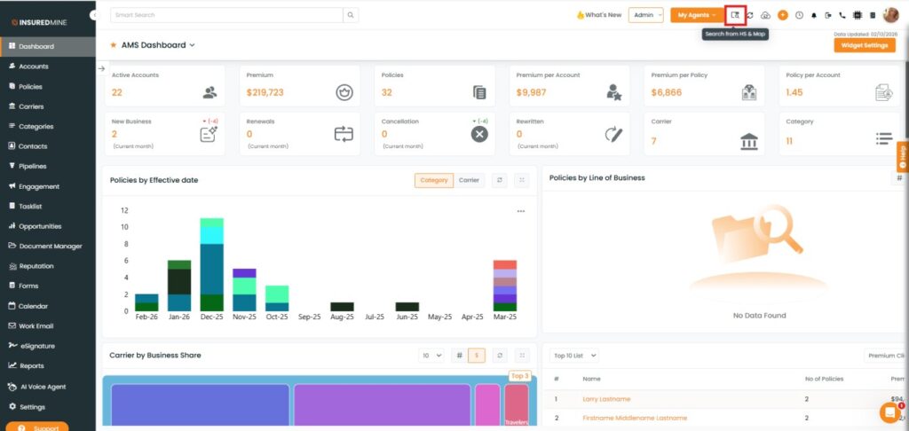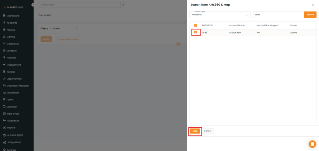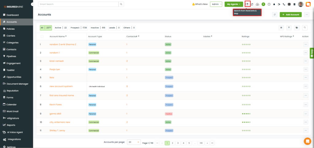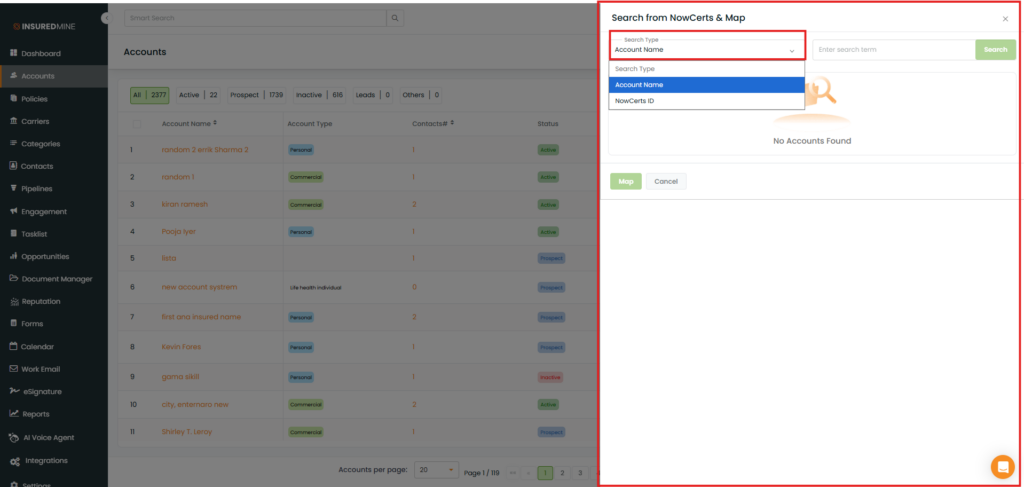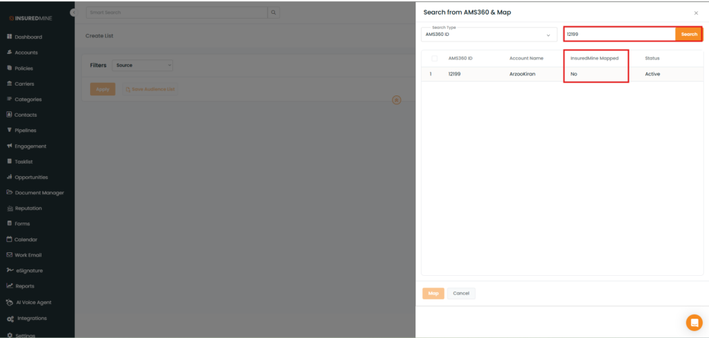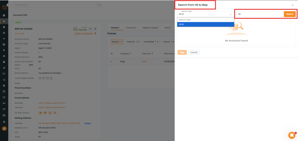 Use Case: Agents can now instantly bring accounts created in Epic into InsuredMine using the Epic Search and Map feature.
