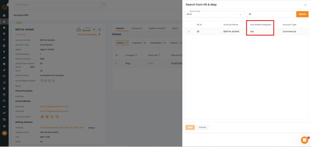- If the Epic account is already synced to InsuredMine → Mapped: Yes