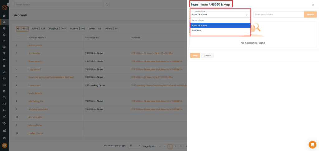 - As shown below, Based on the account name entered, the search results appear along with other details.