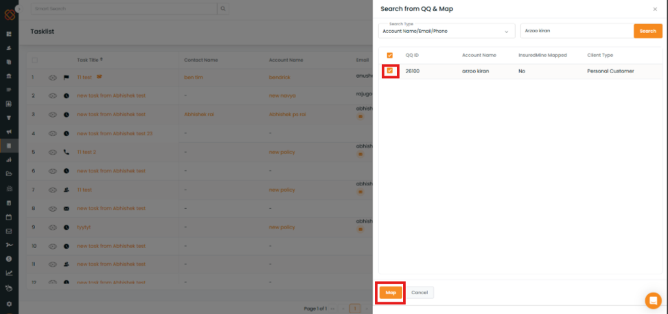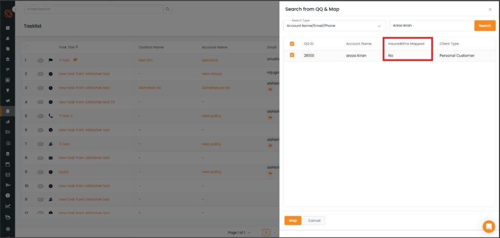 To Search & Map a QQ Account into Insuredmine: