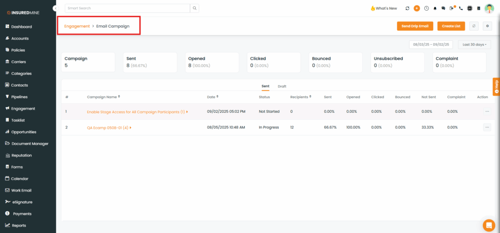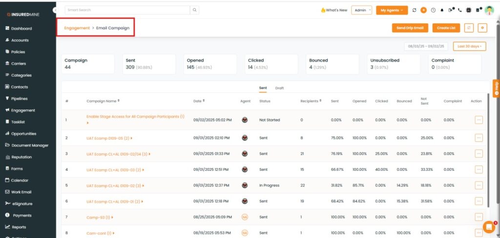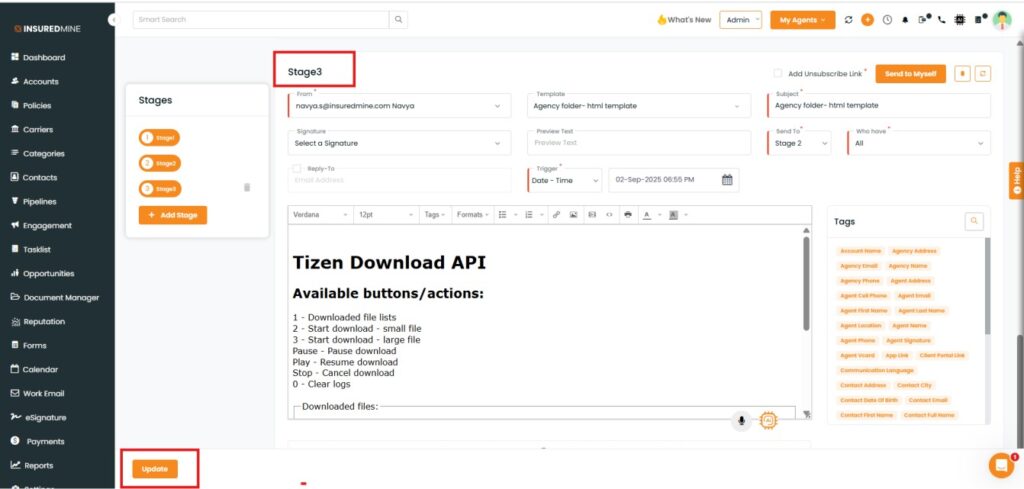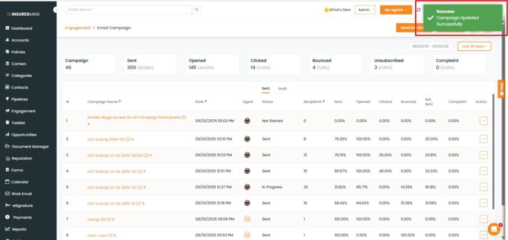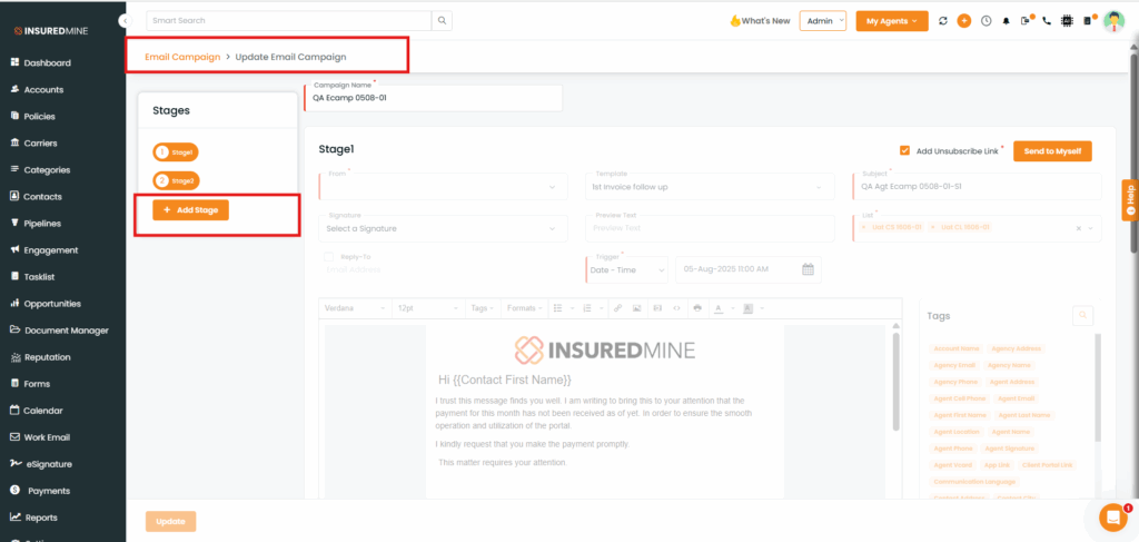 We have introduced a new enhancement in the Engagement Module under Email Campaigns. Now, when an email campaign is created by an agent, any stages added by the admin in that campaign are also visible to the respective agent.