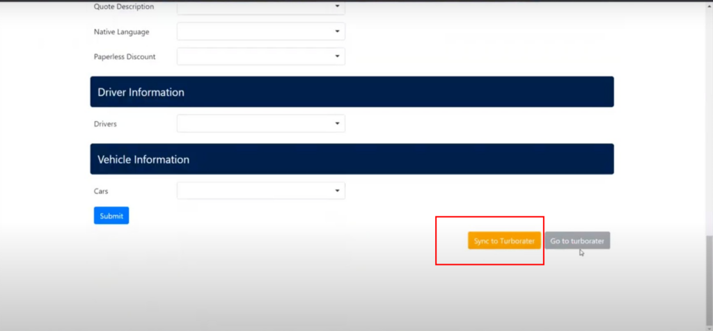- Click on Go to turborater. Enter login details to view the synced responses.