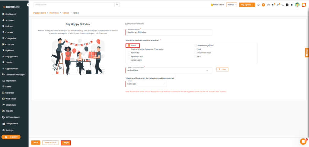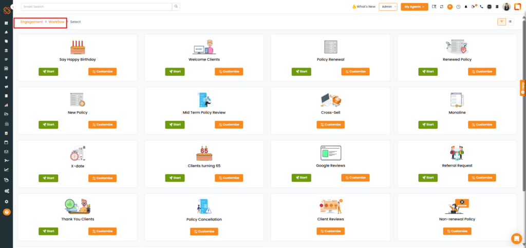 - You are redirected to the Engagement > Workflow page.