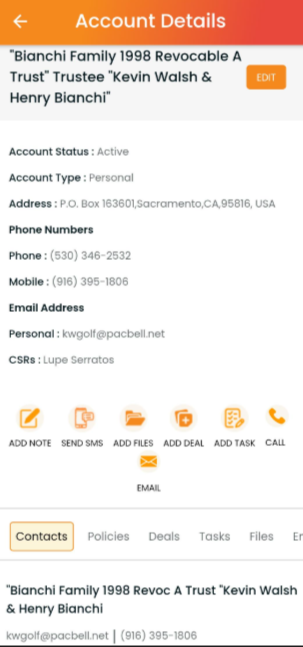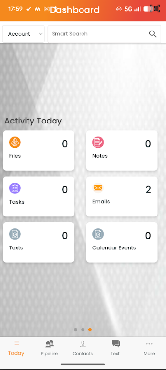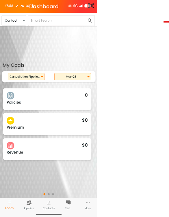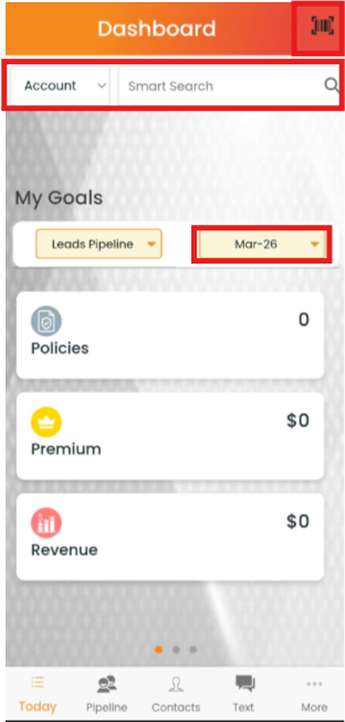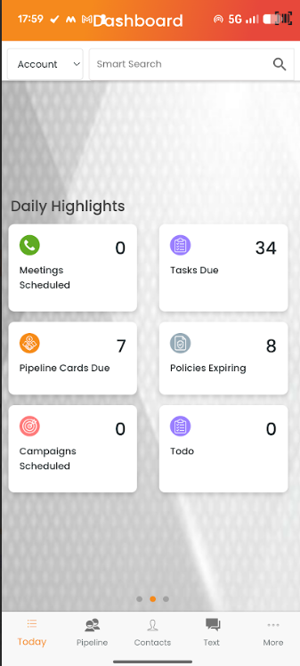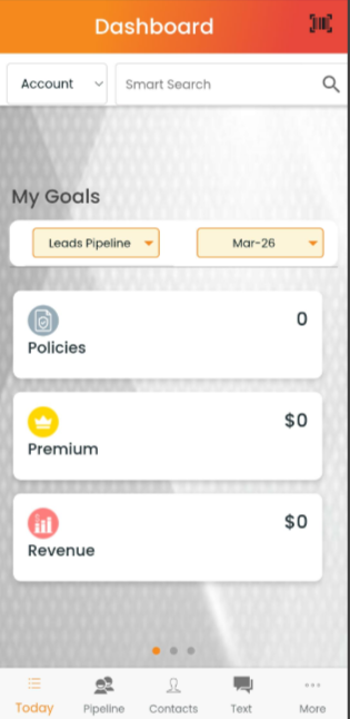 - Smart Search helps quickly find Contacts, Accounts, and Policies.