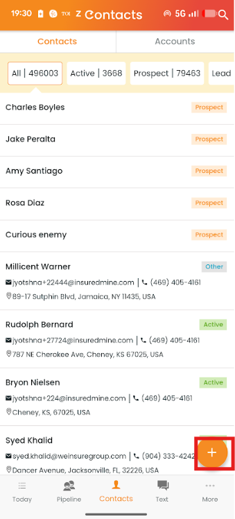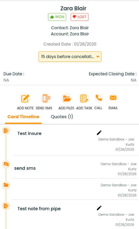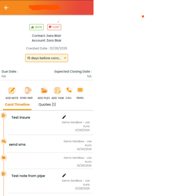 - Create an account or contact instantly by scanning a business card using the provided Scanning icon.