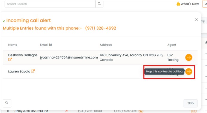 Note: If multiple contact is mapped with the same no then only this pop-up appears to map this contact to call log .
