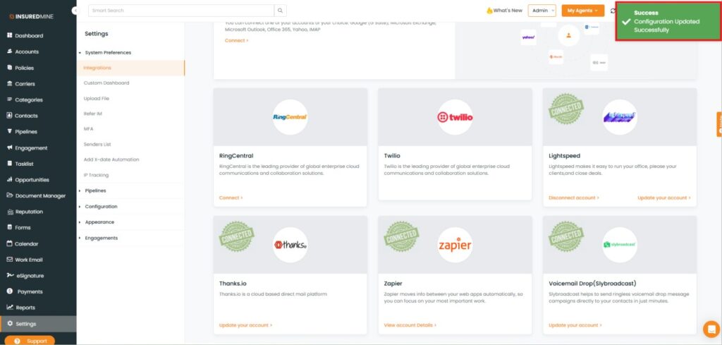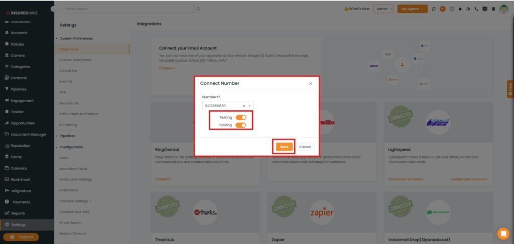 An initial setup is required to Integrate Lightspeed Voice with Insuredmine. Click on the link below to see the instructions.