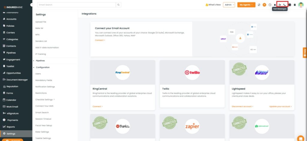 - Navigate to Settings in InsuredMine.