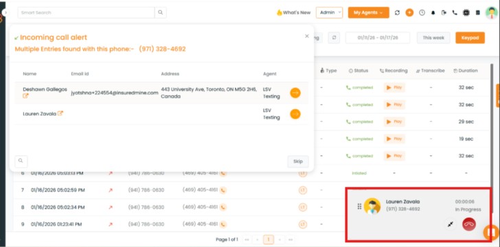 When there is an incoming call, the client entry related to the phone number is displayed if the data is available in the records. After the call is received or not received, that will be mapped in the communication section in Contact 360.