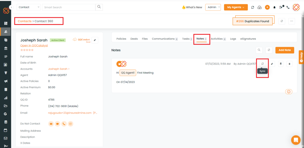 You can manually sync the files, tasks, and notes from InsuredMine to NowCerts and QQ Catalyst.