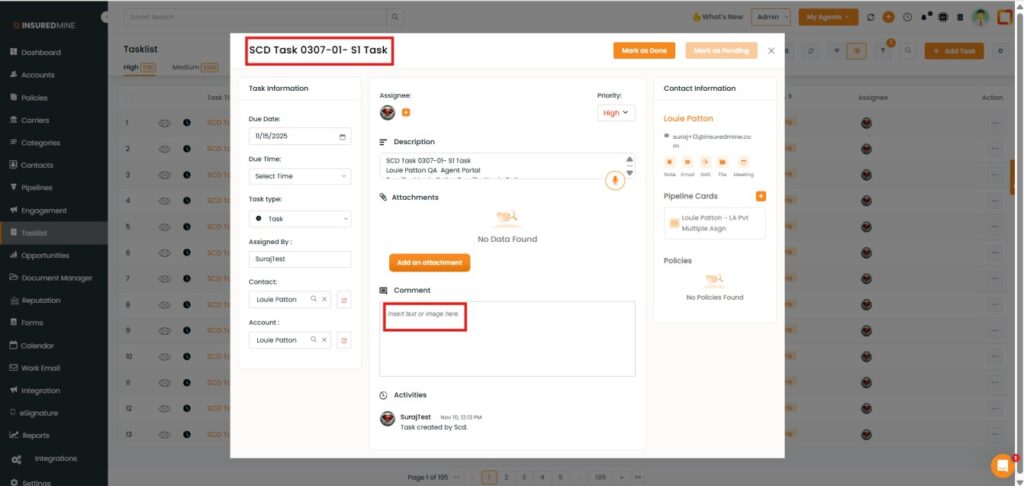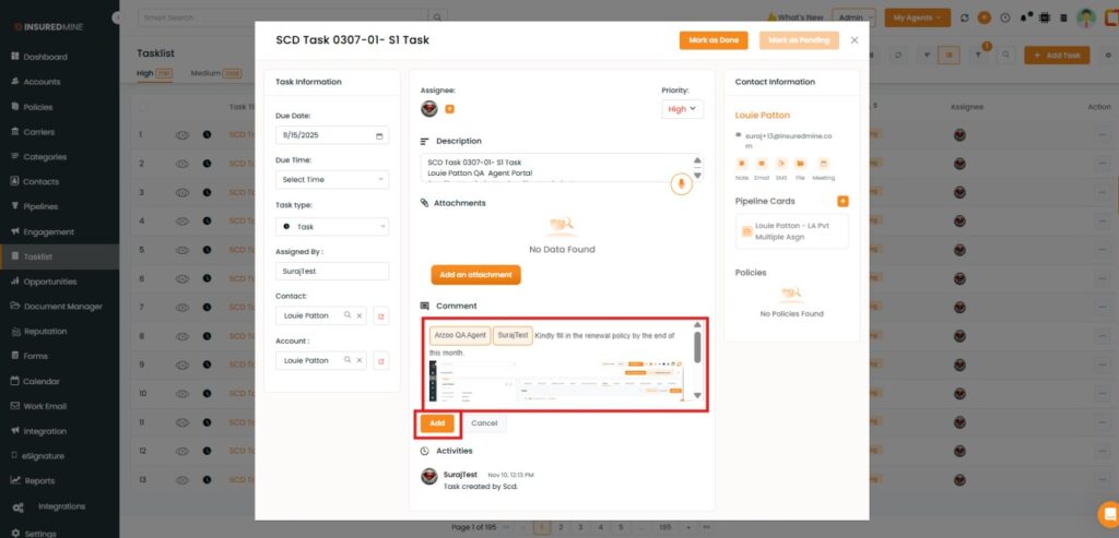 Use Case: This enhancement ensures that agents are immediately informed when comments are added to their assigned tasks. With timely notifications and emails, agents can review comments quickly and take prompt action as needed.