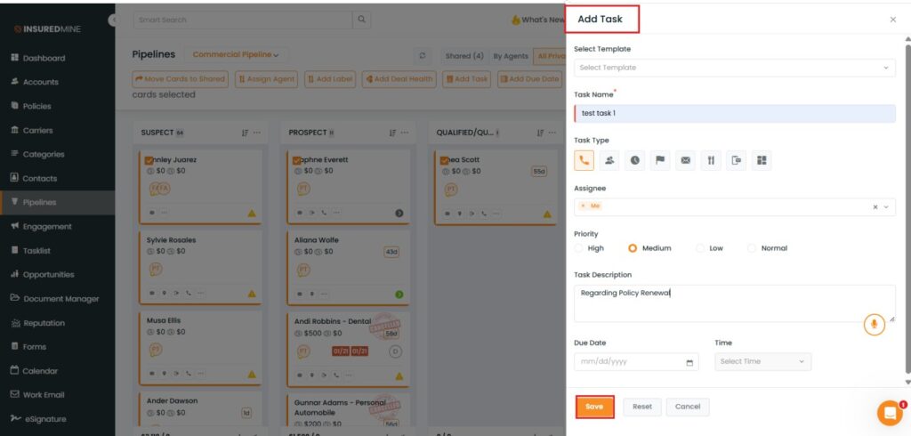 Earlier, tasks had to be added individually to each deal card, but with this enhancement, users can now select multiple pipeline cards and assign tasks in a single action. This helps streamline overall task management within the pipeline.
