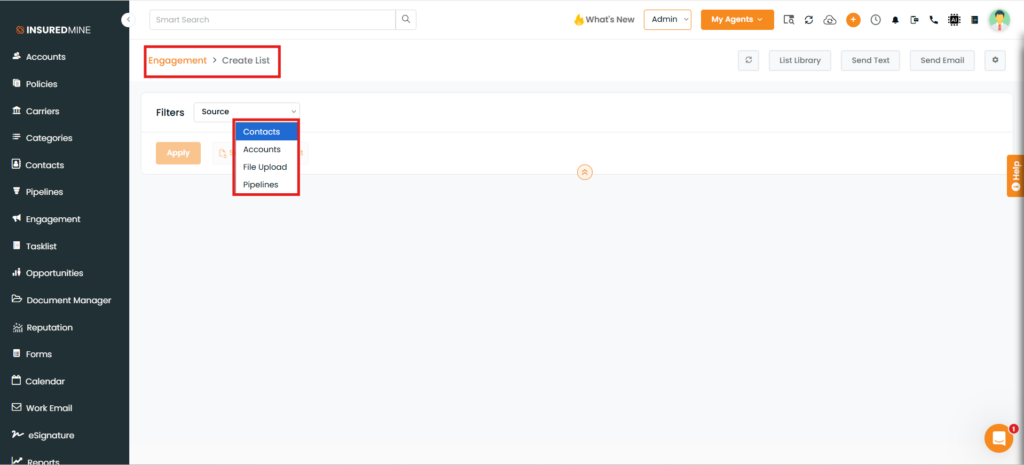 - As shown below, from the source dropdown select the preferred option (e.g, Contact)