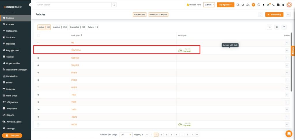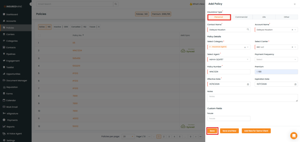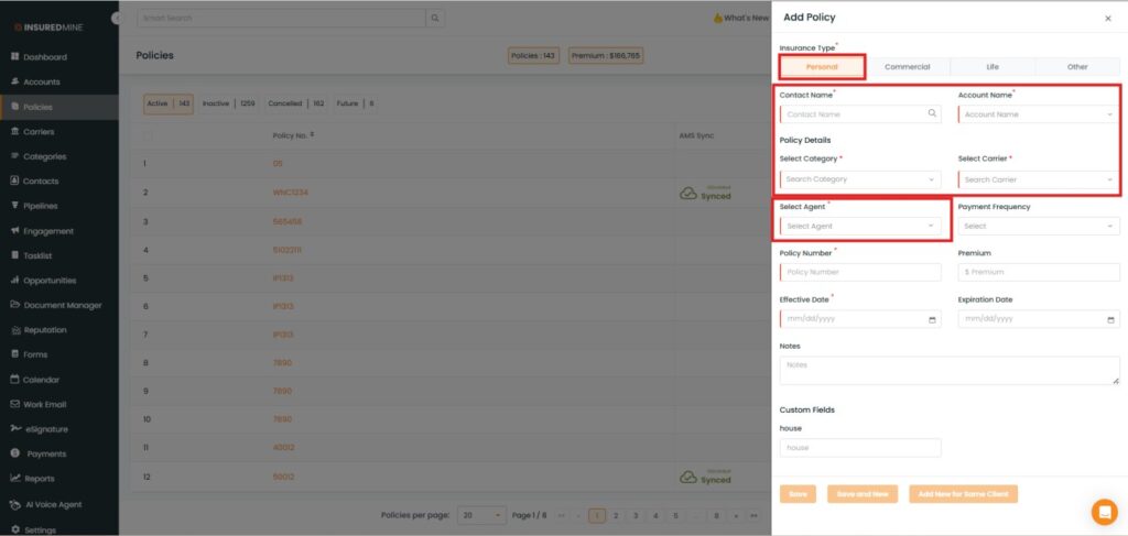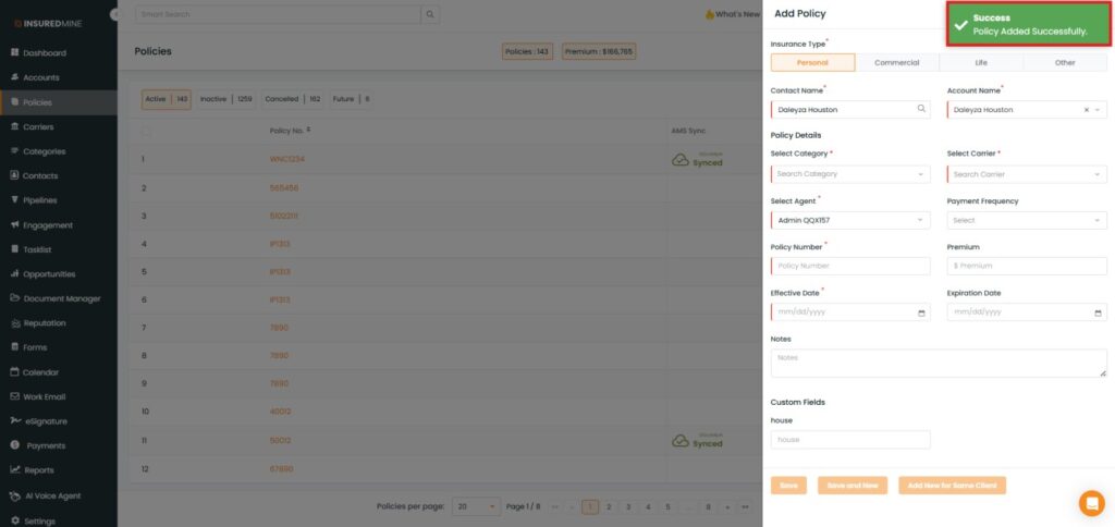 We have introduced a new enhancement that allows policies created in InsuredMine to automatically sync to QQ. Previously, only Accounts, Contacts, and Activities could be synced from InsuredMine to QQ. With this update, policy data is now included, ensuring better data consistency across systems.