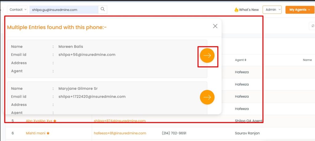 Whenever you will have an incoming call, you will have a screen pop for the call. In case there are multiple contacts saved with the same number, all the contacts will be displayed, you can click on the arrow sign to navigate to the contact 360 of the particular contact.