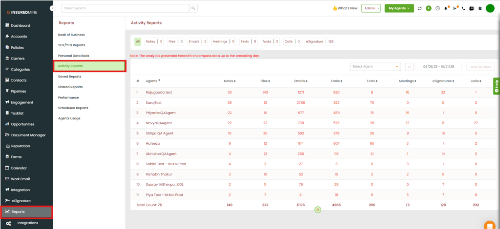 - Click on Activity Reports.